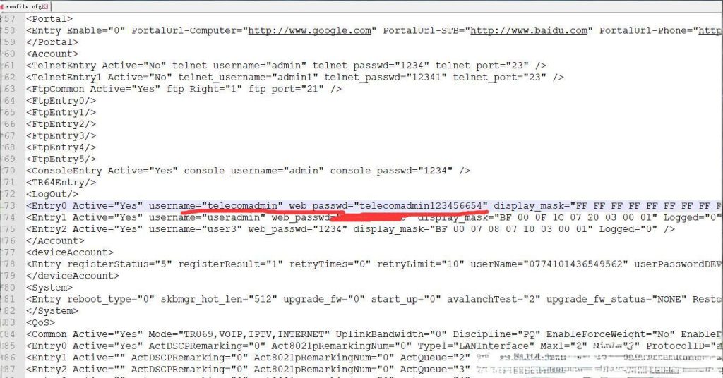 登录后地址栏输入http://192.168.1.1:8080/romfile.cfg再按回车键就可以把romfile.cfg下载到电脑,接下来用文本编辑器搜索telecomadmin就行了。