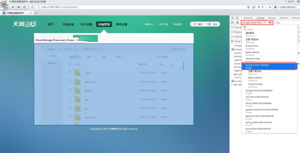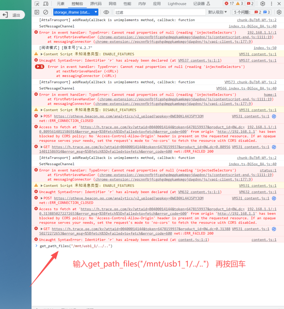 浏览器按F12打开调试模式,然后选择 comsole(控制台)页 ,然后下边眼睛图标左边的下拉列表选择storage iframe (settings)